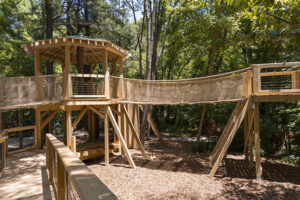 “I think a key thing about this is that the whole nature playscape is a place where kids can climb trees, swing on vines, get dirty, and experience risk,” Rairdon says. “Kids spend a lot of time on screens and don’t get to experience this, but that’s a very important skill in life to undertake and experience risk.”