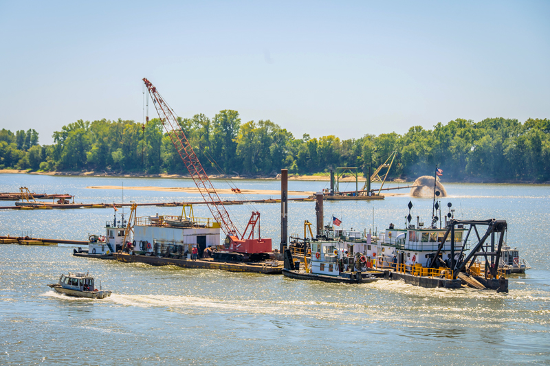 Our place in the bend of the Ohio River gave life to what’s now Evansville. The city has built itself up from it, yet all roads (especially in Downtown, where they tip 45 degrees) seem to lead back to the water. Steamboat captains knew they had reached Evansville once they saw the twin steeples of Saint Boniface on Wabash Avenue. Now, riverboat cruise stops drop off travelers for a day of fun in the River City. Festivals are held alongside the river, and here at Tucker Publishing Group, Inc., we claim our spot in a three-story building smack dab in the middle of the riverfront, taking it all in. Most summers, the U.S. Army Corps of Engineers dredges the Ohio River at the Evansville bend to maintain a 300-foot wide, 9-foot-deep channel for towing vessels. In the process, an island that attracts hundreds of pleasure boaters is created.
