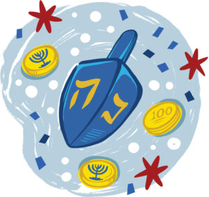 Hanukkah stretches over eight days starting Dec. 18, and the gift shop at Evansville’s Temple Adath B’nai Israel is a bustling spot for seasonal artwork, gifts, and menorahs. While shopping, pick up a dreidel game to play at your next holiday gathering. Players take turns spinning the dreidel once, and the letter it lands on determines if players gain or lose game pieces. The winner is the person who manages to collect all the game pieces.
