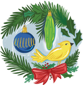 This tradition seems strange, but hear us out. A decoration in the shape of a pickle is hidden in a Christmas tree, and the finder is rewarded with either a gift or good fortune in the coming year. The “Weihnachtsgurke” (Christmas pickle) often is made of blown glass and sometimes is fragile, so be careful as you poke around the tree in search of it. A pickle decoration has a number of different origin stories, but many link it to Germany. Regardless, it provides a perfect connection to Evansville’s German heritage and a fun, Old World tradition.