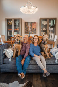 Also crucial to the home’s flow was flooring. With a pair of large Airedale Terriers named Jax and Calli milling about, the Duells opted for the same kind of durable hickory hardwood their last home sported. With assistance from Kristy Jones at Greer’s Flooring America, “We found a gorgeous floor with different tones — super-dark brown to black seams to lighter hues — so it gave us something to play with. It gave us flexibility,” Anne says.