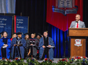 The Henderson, Kentucky, native called himself a proud West Sider who admires USI’s grit and determination. “USI continues to shine as a beacon of grit, hospitality, and creativity,” he said. “… Together, we will build, we will serve, and we will thrive, all on purpose.”