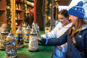 The Christkindlmarkt is a perfect opportunity for holiday gift shopping and collecting German trinkets. Several vendors even sell Hoosier-themed bier steins and mugs.