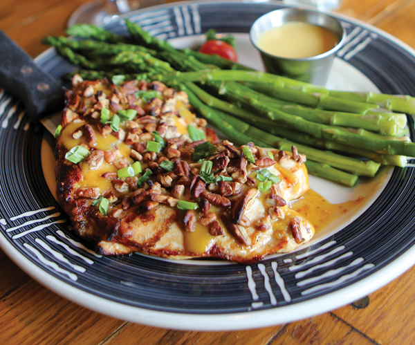 Pecan-crusted chicken, Sante Fe pork, and bourbon-glazed chicken help fill out the rest of the menu. Sides have grown to include steamed asparagus or broccoli, sautéed garlic mushrooms, and the well-loved twice-baked potato.