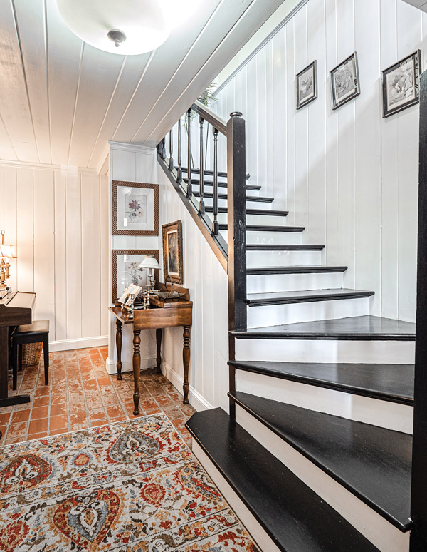 “I commissioned Zacheriah Hust — a true local artist — to create steps to complement the rest of the ironwork,” Banna says. “I wanted guests to be able to access and enter the front door and porch. He told me it was a labor of love for him.”