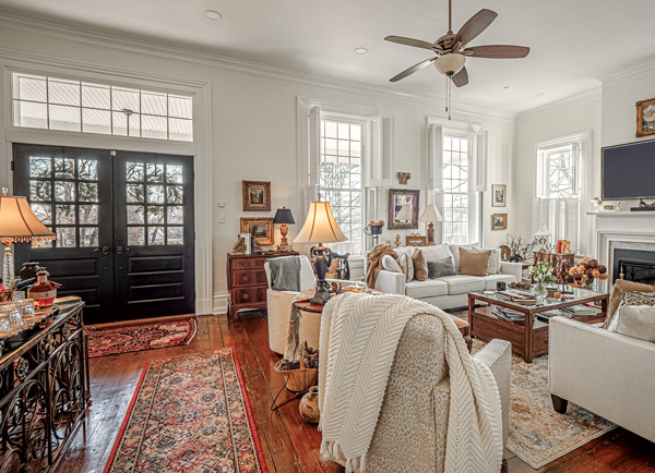 The porches provide views of both the river and the historic street, so Banna praises the house’s layout for entertaining and maintains that it’s a peaceful place for anyone who visits. The homeowner discovered it at a time when she particularly needed a lift. After her father’s death and a divorce, Banna found out through friends that this house was going up for auction, and she was able to buy it directly from the owners in 2022.