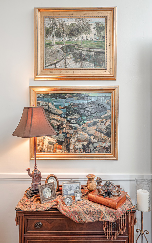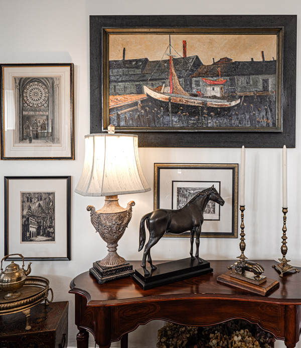 Her furnishings and art collection also show a reverence for the past. Some of Banna’s antiques were collected with or inherited from her mother, a Campbellsville, Kentucky, native who passed away in summer 2023 — which brings Banna’s own history into her current life. Some favorite pieces include two antique buffets in the dining room, one dating back to the 1800s, and a rocking chair her great-grandmother used when Banna was a baby.