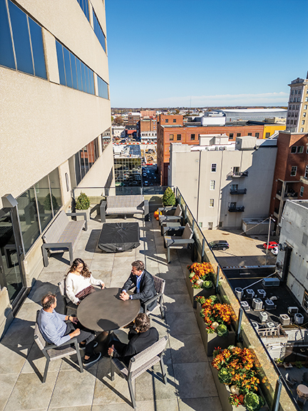 Jackson Kelly attorneys enjoying office’s terrace, convenience.