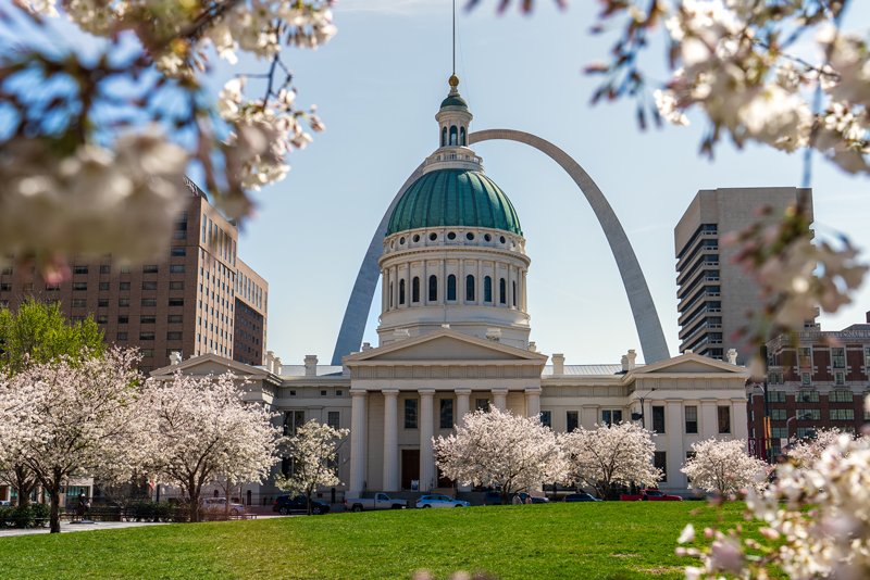 The building is steps away from the Arch, and its stone columns and cupola dome cast a dignified presence Downtown.