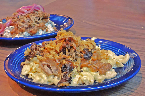 All of Homer’s tableside sauces are homemade and can stand alone or be combined to enhance flavor profiles. While the $10 Mac & Cheese Bowl’s pile of steaming macaroni and cheese, baked beans, and crispy onions is already topped with the sweet barbecue sauce, a dash of the Alabama white sauce on one side and the Carolina Mustard on the other increase the dish’s creamy-textures and tangy bite.