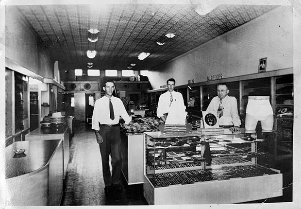As he searched for work, Eickhoff met Art Abel, owner of Abel’s Menswear on Evansville’s Franklin Street. Although Eickhoff lacked a completed secondary education, Abel offered to hire him, an offer that left Eickhoff shocked. He reportedly asked Abel, “Why do you want to hire me? I can’t even tie somebody’s shoes.” Abel responded, “Tell them to tie their own damn shoes. You are a veteran. We’ll see use of your hands.”