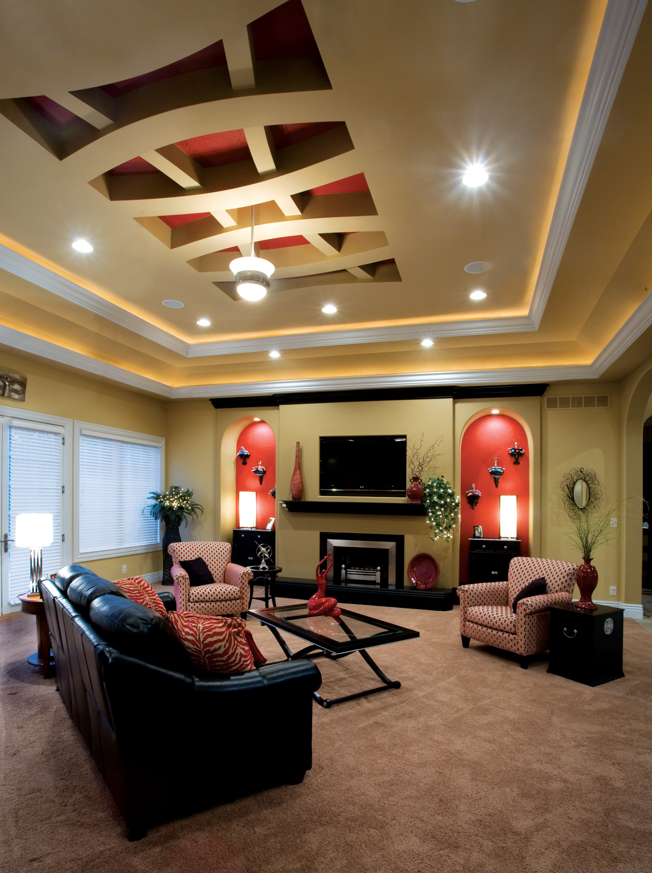 Moving from a condominium required the Carsons to furnish and adorn the home with new purchases, providing an opportunity for Vicky to collaborate with her friend, interior designer JoAnn Westover. Though some pieces were brought from the condominium (a bold red bookshelf in the foyer, reconstructed for the new home) and procured from the couples’ travels and global Internet sources, most of the new furnishings were acquired from Lea Matthews Furniture & Interiors.
