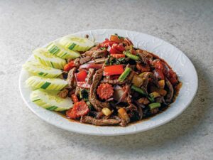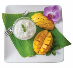 Entrées include stir fry such as pad kra pao and garlic and black pepper, both of which come with a choice of meat; a sweet and sour chicken stir fry with pineapple; or a chicken and cashew blend.