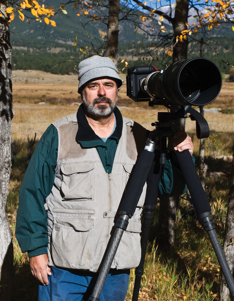 Once I was photographing a six-foot-long western diamondback rattlesnake in Texas that was aggressive. I like to shoot wildlife at eye level, so I laid down on the ground about four feet away from this coiled, ready-to-strike rattler. The local assistant working with me reminded me that rattlesnakes can strike about half their body length. Then he said that even though the snake couldn’t get me on the first strike, he could strike twice before I could get up off the ground and move away. So I got up, moved back and cut a hole in a piece of cardboard. I stuck my lens through the hole and used the cardboard as a shield in finishing the shoot.