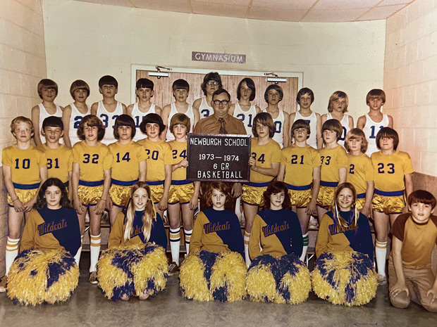 On a recent cold and snowy morning, while taking a rare day off at home, I received a text from Dr. Chris Gilkey, a Newburgh, Indiana, chiropractor and friend of more than 50 years. Glad to drop what I was doing (decluttering my son’s walk-in closet … yep, that’s a day off), I stared at my phone and was very pleasantly surprised. There staring back at me was a photo I had not seen in decades: my Newburgh Elementary School Wildcats sixth grade basketball team and cheerleaders.
