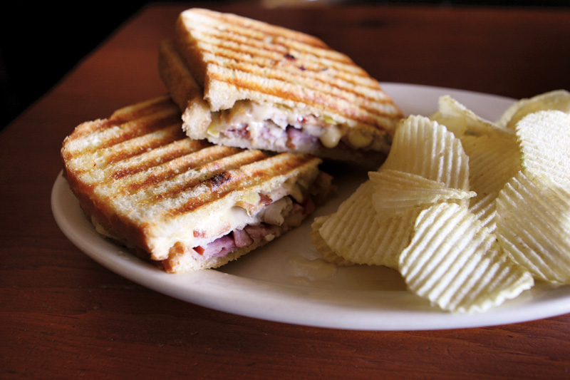 The Pub serves dishes typical to many pubs, but the food certainly is above average. The stout Pub Burger, for example, is considered by many to be the best burger in the city, and the beef gyros are among the best-selling dishes in the restaurant. However, if your taste buds crave something beyond pub staples, try a panini. With four large, savory paninis to choose from (all priced at $7.50), The Pub is bound to please any famished customer. I opted for the Pearl — a unique panini with roast pork loin, ham, applewood smoked bacon, caramelized apples, and smoked gouda cheese. The addition of the caramelized apples may seem like an odd choice, but the combined flavors make for a delicious panini with just a hint of sweetness. With potato chips on the side, this makes for a filling meal. Customers can also ask for half a panini plus a bowl of the soup of the day for $7.95.