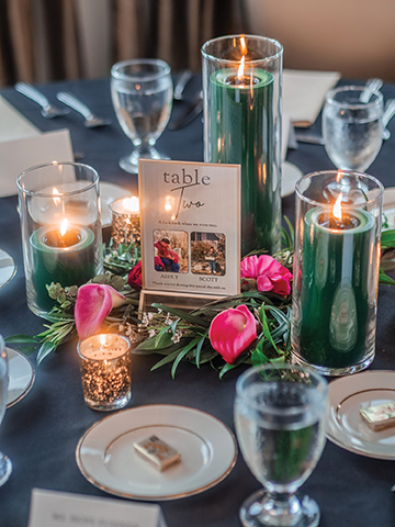 Ashly’s favorite moment was walking down the aisle, which Scott describes as a “Kodak moment.” He enjoyed sitting at their sweetheart table, sharing a quiet moment amid the celebration. “That was the first time being married actually sank in for the both of us,” Scott recalls. “I looked to Ashly and said ‘So … I guess we are married now.’ She responded with, ‘I couldn’t be happier.’”