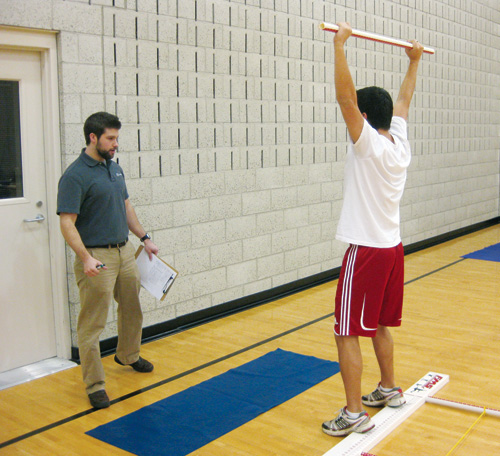 Take, for instance, the Y-balance test first used on seven local high school teams. The test, one in a series of several, requires an athlete to stand on one leg and reach with the other as far as possible in three different directions, revealing various body attributes — strength, flexibility, range of motion, and balance.