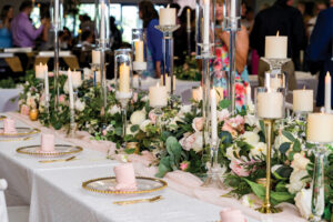 OBJ Design helped make Julia’s design vision come to life, as she has always dreamed of a pink sparkly wedding. The venue was covered in flowers, chandeliers, lights, draping, and plenty of sparkles.