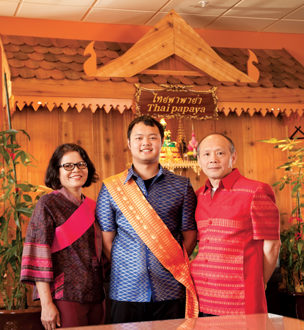 “He learned the cooking from my wife and he learned the front (dining room) from me,” says Joe. Nicholas manages the Thai Papaya Facebook and Twitter pages, the restaurant’s website, and designed a Thai Papaya mobile app. Once downloaded, customers can view all 50 menu items and quickly place an order for pickup, generating an estimated pickup time.