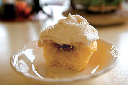 The bakery offers seven to 10 varieties of cupcakes daily such as lemon-lemon, strawberry-strawberry, snickerdoodle, red velvet, peanut butter cup, and the four chocolate-vanilla combinations. I tried the lemon-lemon, raspberry-infused cupcake. The lemon tang punched me in the mouth, and the super moist treat crumbled on the first bite. The ultra-smooth mound of lemon buttercream atop the fluffy lemon cake pairs nicely with the tartness of its gooey raspberry center.