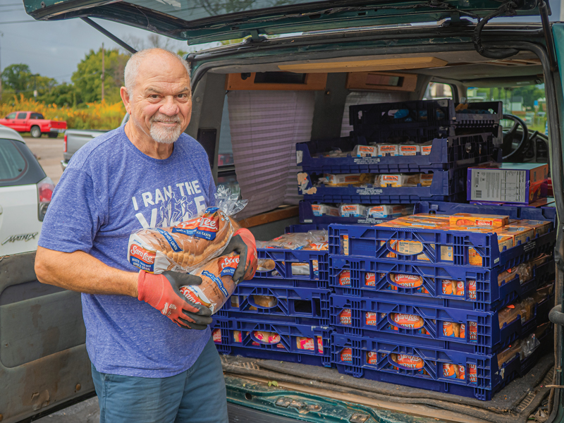 A retiree from the grocery industry for about 12 years, Kersting uses his connections for good. Upon entering his post-work life, “I found out there was some foodstuff getting wasted. It’s hard to get it picked up. The warehouse isn’t always open,” he says.
