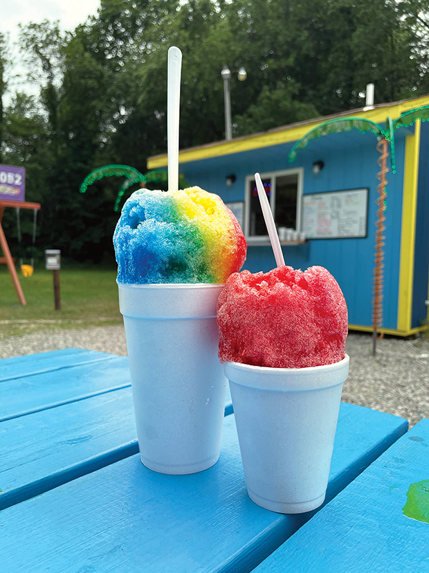 20-plus flavors of shaved ice, including fireball, cappuccino, mango, and lemon lime-a-licious.