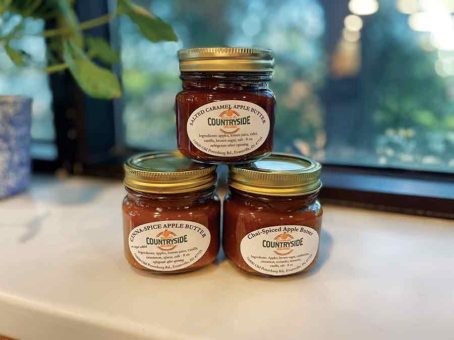 Evansville Countryside Orchard owners Kristi and Tim Schulz have sold their apple butter for seven years in half-pint glass containers. Any apple can be used to create apple butter, but Kristi includes Granny Smith, Golden Delicious, Jonathan, and Gold Rush in what starts as applesauce. That already is sweet enough for Kristi, but some recipes call for additional brown or white sugar.