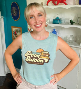 Camper” goes to Rachel Wambach of Sprout Design, who was inspired to create cheerful, tongue-in-cheek merch emblazoned with the sunken saloon against a setting sun.