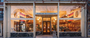 The grand center staircase may be gone, removed to make space for Parlor Doughnuts’ coffee bean grinder, but the Clifford Shopbell & Co.-designed Bitterman Building again buzzes with activity. The Bitterman brothers started their jewelry business in 1888 in the red brick and tile Italianate corner unit but moved into the three-story limestone and Chicago School-style building next door in 1923. Now, the mezzanine looks out over plates of flaky pastries and pours of gourmet coffee. Once-empty walnut-framed jewelry shelves are filled with branded merchandise. The store’s vault still stands, a shout-out to the building’s status on the National Register of Historic Places.