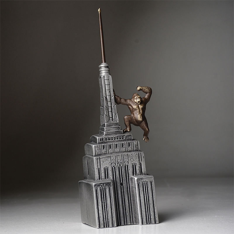 Some items have an interactive feature: a swinging door on a camper trailer, a squeezable trigger on a laser gun, or an opening top on a spaceship. There also is a sculpture recreation of the iconic “King Kong” scene in which the gigantic gorilla dangles off the Empire State Building.