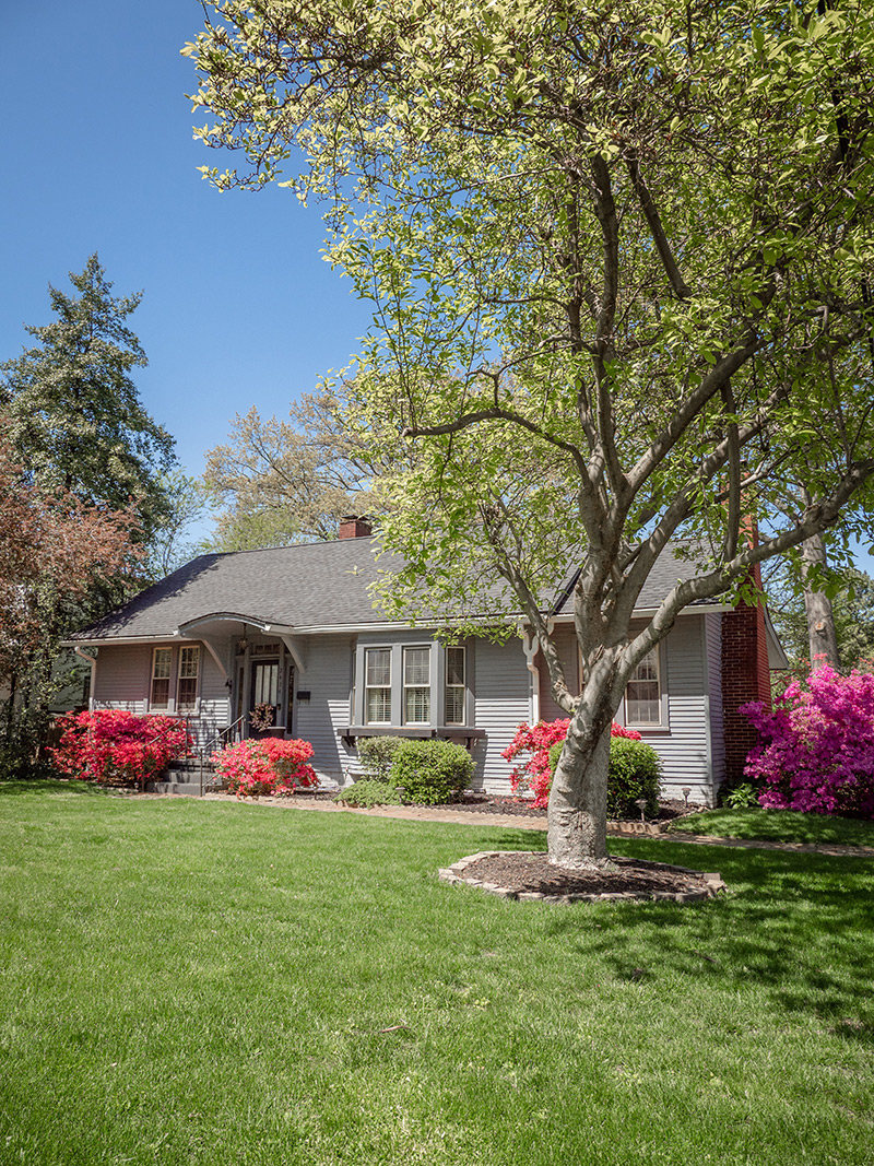 Built in 1931, Horn has kept the original color of the 1,300-square-foot wood home as it captures the initial beauty combined with the colorful azaleas.