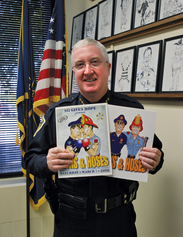 Hill also draws caricatures for officers retiring from the department, and he’s created a coloring book for National Night Out, an annual event that aims to strengthen police and community partnerships. And the drawing of a scowling police officer and a firefighter facing off in the boxing ring? That’s Hill’s, too, seen on the program and billboards for the Guns and Hoses charity boxing match. “It’s a great event,” he says. “I’m tickled to contribute in some way without getting punched in the face.”