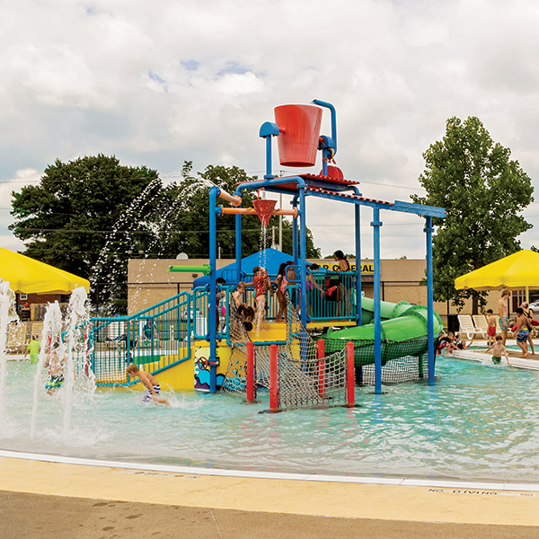 Weekly day campers at the Deaconess Aquatic Center’s CenterPoint Energy Splash Pad and the Welborn Baptist Foundation Recreational Pool