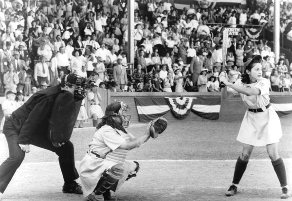 All-girl baseball teams replaced male players in uniform during WWII. In the movie, filmed at Bosse Field, the Rockford Peaches and rival Racine Belles faced each other in the World Series. Many of the league’s real-life players played for several years after the war.