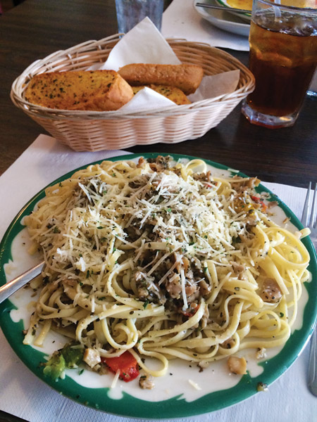 Dine on the Chicken ala Crema, a recipe accidentally made when owner Angelo Jawabreh poured Alfredo sauce over chicken Marsala. The dish found a life at the restaurant among other authentic favorites. Angelo’s promises an enjoyable dining experience with its convenient location on Main Street — at lunch when pizza and pasta entrees are featured ready-made, or at dinner, when the restaurant seems more like a trattoria.