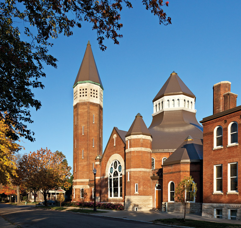 Indiana Landmarks envisioned a reuse that converted the sanctuary and Sunday school to cultural and performing arts venues and its state headquarters, and appealed to the Cook family of Bloomington, Ind., to help convert dream to reality. (Bill Cook, founder of a medical equipment company, was long ranked as Indiana’s richest person, and among the richest in America.)