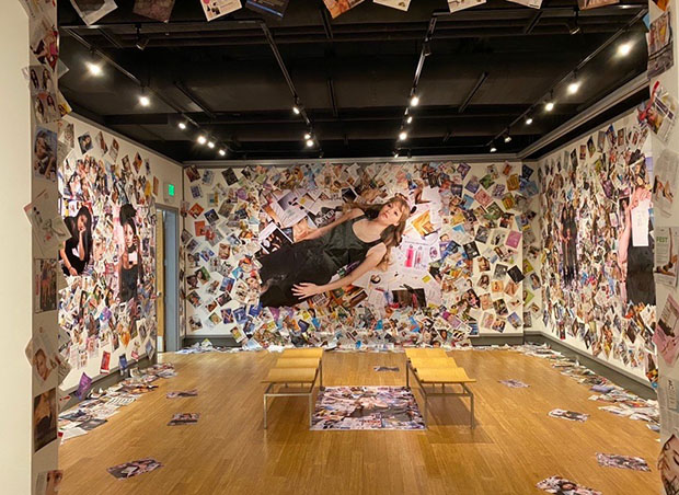 Thorne made the exhibition an installation from start to finish, including a room covered floor to ceiling in magazine ads and images, in order to give the viewer an immersive experience.