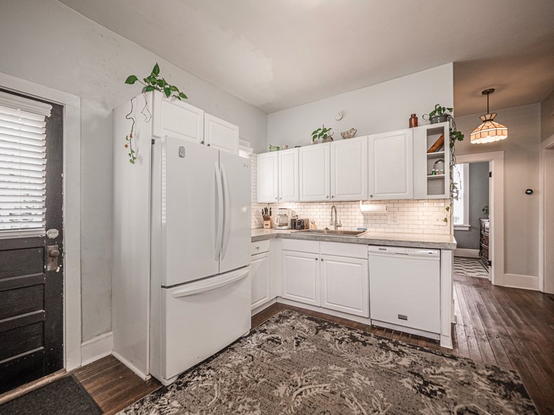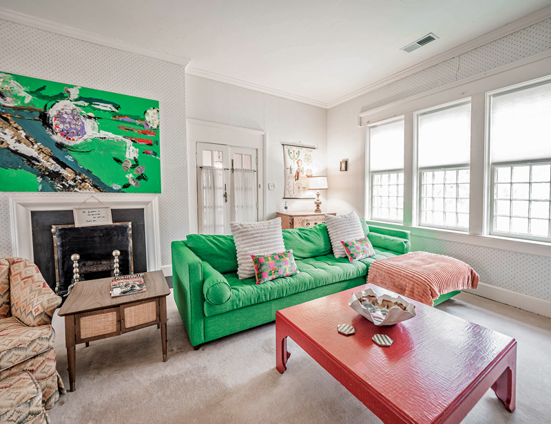 “This house was really dilapidated. Over the course of another year and a half, I was working on this. There were two layers of carpet pad and six layers of vinyl. We found all the hardwood underneath. We had to rewire and re-plumb the whole house,” Peter says. “When you have to do all that work, you get to do your own thing as opposed to something that’s already done and ready.”