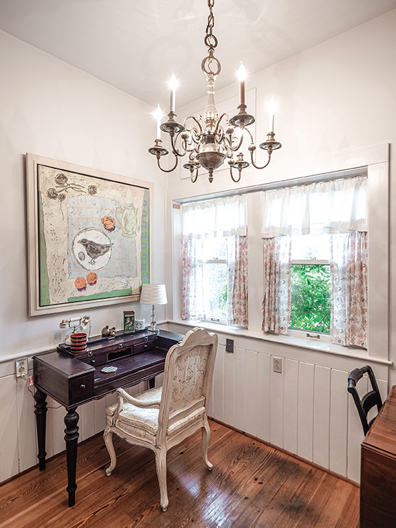 Using his skills from renovating and managing properties, Peter began to completely revamp the house, which was built in 1864. Renovations included removing a downstairs chimney to create an open concept as much as possible. Peter’s work transformed the house into a three-bedroom rental that accommodates eight overnight guests. It boasts a full bathroom and kitchen, washer and dryer, TVs, and a dining room complete with a handcrafted driftwood table. Much of the furniture and decor the couple bought secondhand and online.