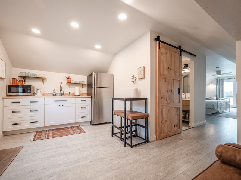 Renovations took three months to complete before the loft opened in February 2023 as an Airbnb called Riverfront Loft. Jessica’s love of interior design, which she describes as a hobby, reimagined a cozy upstairs loft above a bustling coffee shop.