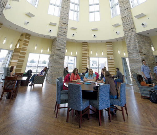 Count the students, who once characterized the former university center as “cramped,” among the fans of the new addition to their campus. “The space has opened up lines of communication among organizations that were not possible before,” Whitledge says. “It allows us to better coordinate and cooperate with each other on various projects and programs. I feel the space promotes more student involvement which creates better learning opportunities for students outside the classroom.”