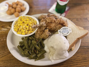 Owner Rick Kennedy, who’s had the business since 2010, says plate dinners are what Darmstadt Inn regulars grab the most. Fried chicken and catfish always are popular choices, as well as pork chops and country fried steaks.