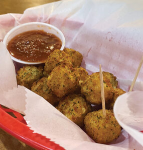 The menu’s appetizers stretch beyond typical items like onion rings and breaded mushrooms — think fried provolone bruschetta and fried green tomatoes.