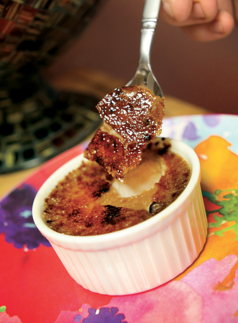 When preparing to serve, use either a broiler or a torch. For safety reasons, I’ll stick with the broiler method even though I much prefer to use a torch (if you decide to go with the torch for caramelization process, do yourself a favor and just use a propane/butane torch from the hardware store). Using about 1 tablespoon per serving, sprinkle sugar over the custard to coat the entire surface. Place the ramekins under the broiler for about two minutes until the sugar just begins to turn golden brown. Once chilled, enjoy this lovely chocolate favorite!
