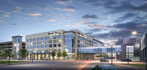 After a few stumbling blocks, the $71.4- million DoubleTree Hilton Hotel — located adjacent to The Ford Center — broke ground in March 2014 with plans to open the structure by January 2017. The Downtown hotel features 241 guest rooms and a full-service restaurant and lounge, and is being built by lead contractor Hunt Construction. The DoubleTree also provides 12,000 square feet of event space to help attract convention-goers back to Evansville, which has been without a true convention hotel.