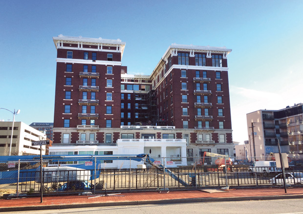 Odyssey Construction is making progress on the $12-million renovation of the former McCurdy Hotel building, owned by the Kunkel Group. Odyssey Construction has restored original ornamental features and brought the former hotel into the 21st century. While commercial spaces will occupy the ground floor, more than 100 modern one- and two-bedroom apartments — starting at $725 — should be available to rent in February 2017.