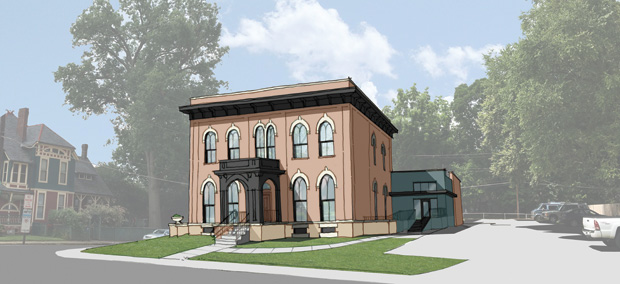 The City of Evansville, Architectural Renovators LLC, and Indiana Landmarks teamed up to take this building from rundown to revived. While the city issued a raze order on the 19th-century rowhouse built in 1882, the Winnecke administration and DMD pledged $100,000 toward Owen Block’s stabilization. With additional funds raised by Indiana Landmarks, Architectural Renovators transformed the building into 15 one-bedroom apartments. The community gathered Aug. 5, 2016, for the ribbon-cutting and tours of the property.