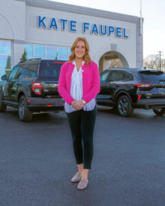 This approach to sales practice extends across the Ohio River, too. Kate Faupel Grealish is the owner of her namesake Ford dealership on Henderson, Kentucky’s U.S. 41 strip as well as her father Ron Faupel’s nearby Henderson Chevrolet GMC dealership. Wearing wildly patterned pants to attract attention, Faupel has encouraged Evansville-area car shoppers to “cross that money-saving bridge” to his dealership in the Bluegrass State for nearly 25 years.