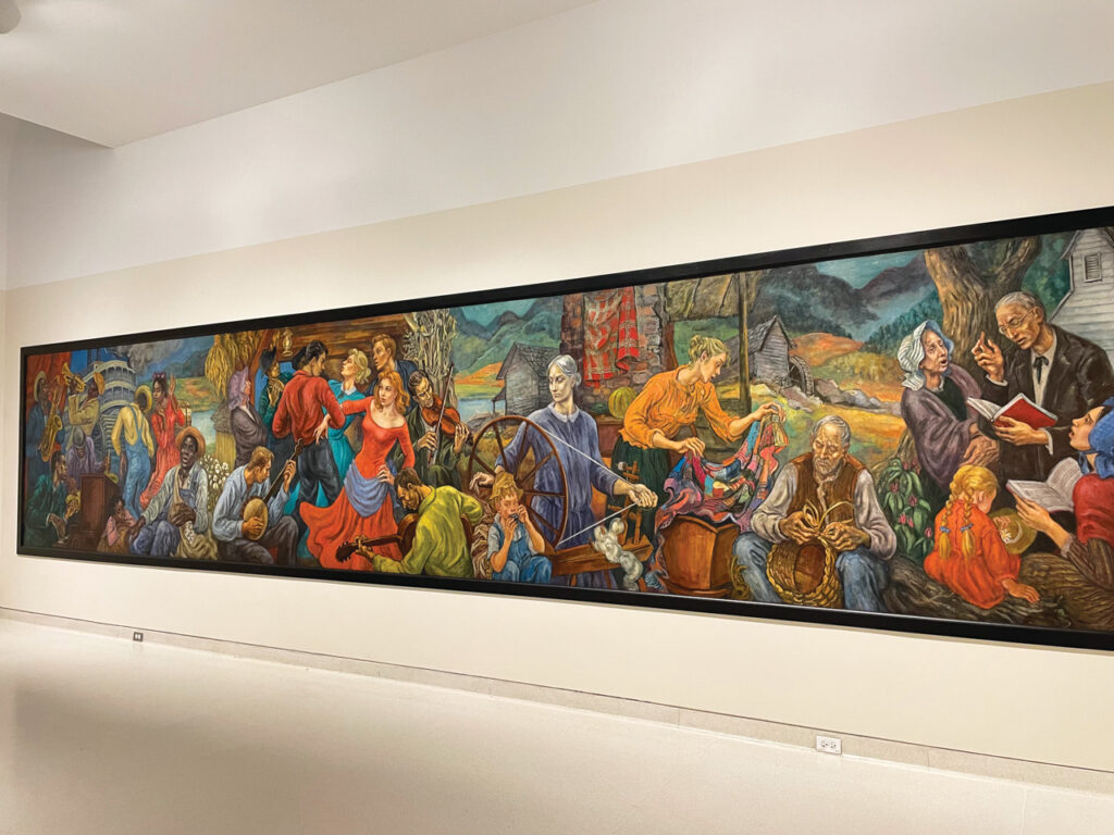 A visit to the Knoxville Museum of Art kicked off our first full day. The 53,200-square-foot facility specializes in regional historical and contemporary art pieces. Painted in 1955 by Marion Greenwood, the 30-foot “Singing Mural” canvas was my favorite for its illustration of the distinctive music styles of the state’s main divisions: the delta blues of West Tennessee, country music of Middle Tennessee, and religious and country music of East Tennessee.